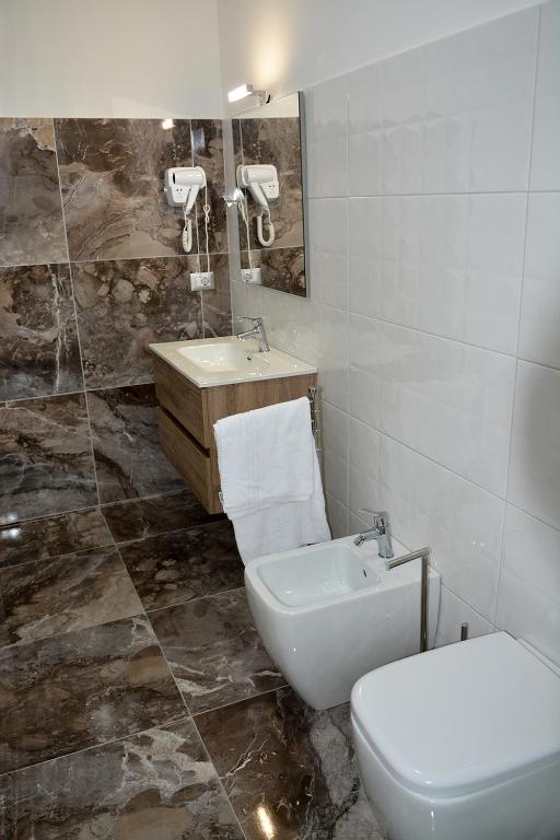 Il bagno privato è dotato di doccia, bidet, asciugacapelli e set di cortesia. Tra i servizi inclusi: TV a schermo piatto, WiFi gratuito, frigorifero e scrivania.